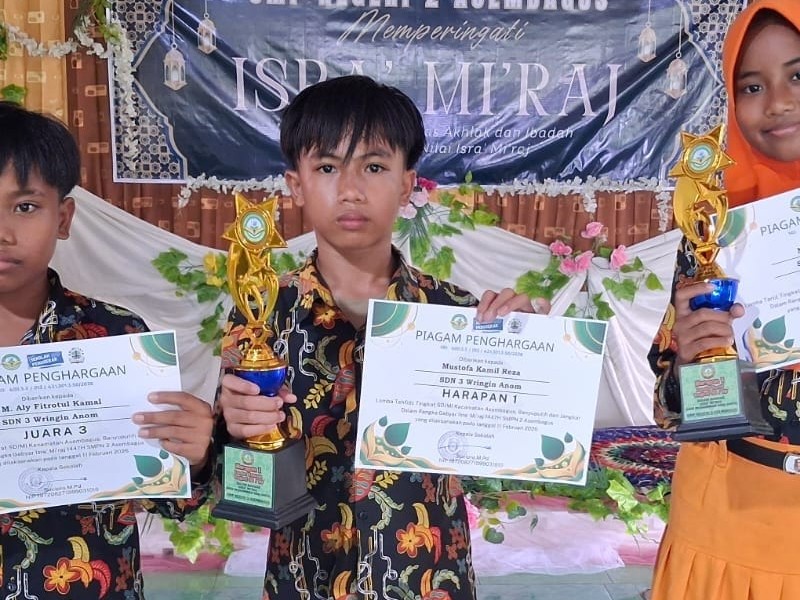 Asembagus 12 Februari 2026 - Alhamdulillah, kabar membanggakan datang dari SD Negeri 3 Wringin Anom. Siswa-siswi terbaik kami berhasil meraih juara dalam lomba Tahfidz dan Tartil Al-Qur’an yang diselenggarakan dalam rangka memperingati Isra’ Mi’raj Nabi Muhammad SAW di SMP Negeri 2 Asembagus.